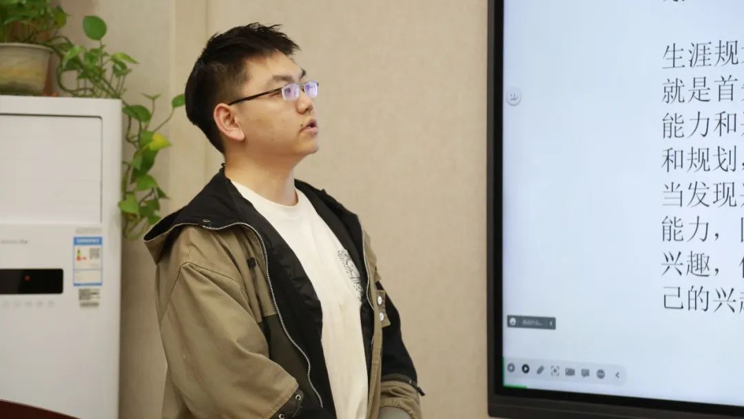 在主持人宣读完比赛流程与规则后,比赛正式开始,六名选手依次上台展示,分别从当前专业学习和职业之间的关系、职业探索、自我探索、职业定位和行动计划等方面进行PPT的展示与自我陈述。