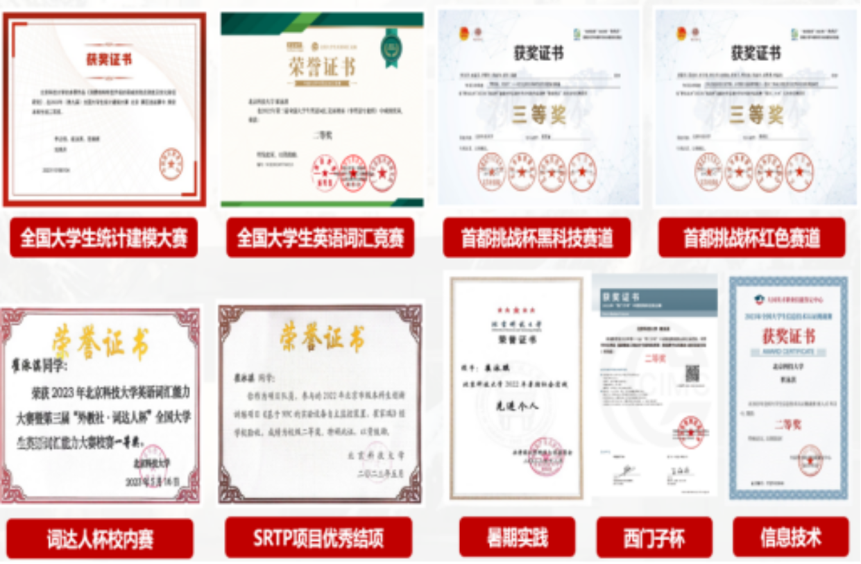 曾获第九届全国大学生统计建模大赛二等奖、第十七届西门子杯中国智能制造挑战赛华中三赛区二等奖、第十八届首都挑战杯课外学术作品竞赛黑科技专项赛三等奖、第十八届首都挑战杯课外学术作品竞赛红色专项赛三等奖、第三十八届美国大学生数学建模竞赛H奖、91直播 智能车校内赛二等奖等多项荣誉。曾参与项目《一种基于NFC识别的实验室设备管理装置》,项目获评优秀结项,并授权国家实用新型专利一项;参与项目《基于RK3588的无人机惯性导航系统开发》,跟随研究生学长学习、研究。