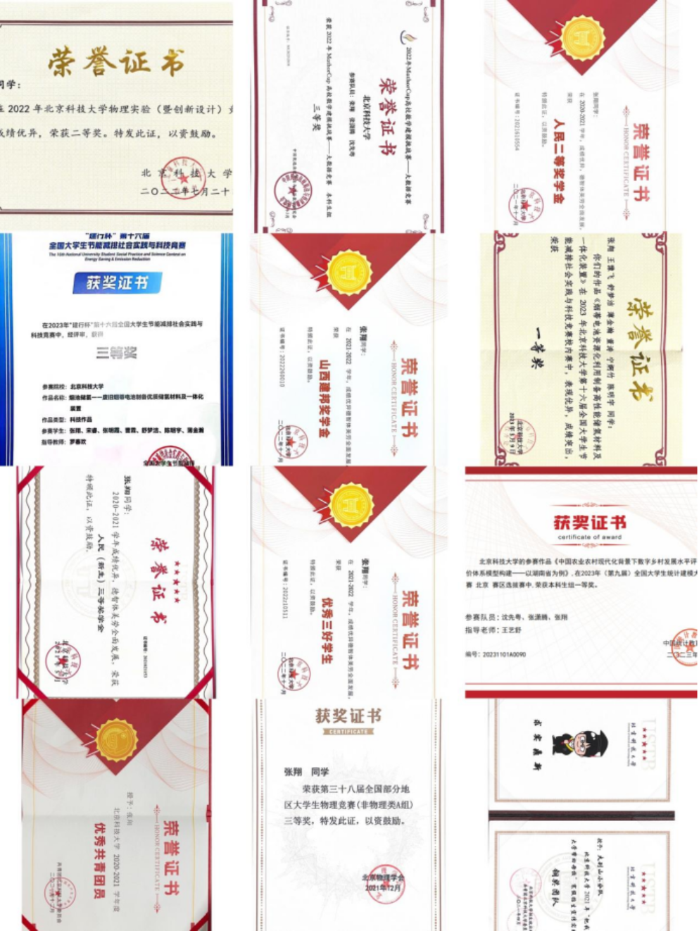 曾获全国大学生节能减排社会实践与科技竞赛三等奖、全国大学生统计建模北京市一等奖、全国部分地区大学生物理竞赛三等奖、MathorCup高校数学建模挑战赛——大数据竞赛三等奖、91直播 节能减排竞赛一等奖、物理实验竞赛校赛二等奖、电子设计大赛校赛三等奖、寒假实践铜奖、暑期实践银奖、院摄影大赛二等奖。曾担任校学生发展与指导中心工科物理组讲师及组长、《钢铁生产全流程副产石墨的高值化利用》项目负责人。