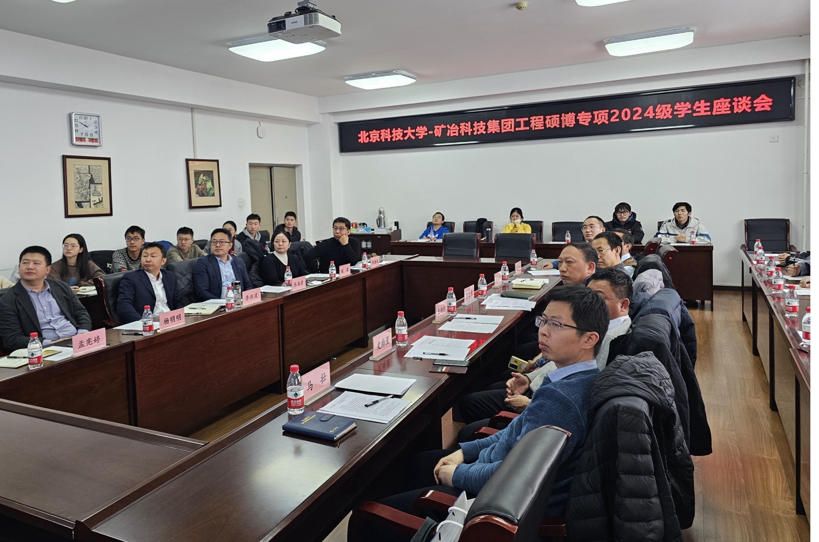 矿冶集团冶金研究设计所所长袁朝新、金属材料研究设计所所长章德铭、矿山工程研究设计所副所长郭利杰、北矿机电科技有限责任公司副总经理史帅星、矿冶集团人力资源部教育培训处处长马壮一同来访。机械工程学院副院长李洪波、机械工程学院党委副书记、副院长杨明明、卓越工程师学院副院长魏鑫、卓越工程师学院副院长刘金龙及相关工作人员、2024级工程硕博专项学生参加座谈会。