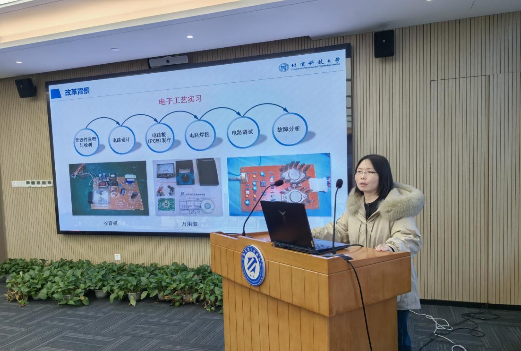业务交流环节,91直播 电子实习基地主任白艳茹作了题为《91直播 电子实习基地实验教学改革探索》的报告,系统介绍了电子实习基地的基本情况、改革背景、开课对象、课程改革难点与举措、素质拓展课程建设以及“电子创客营”系列活动,总结了电子实习基地体系改革的探索与思考。