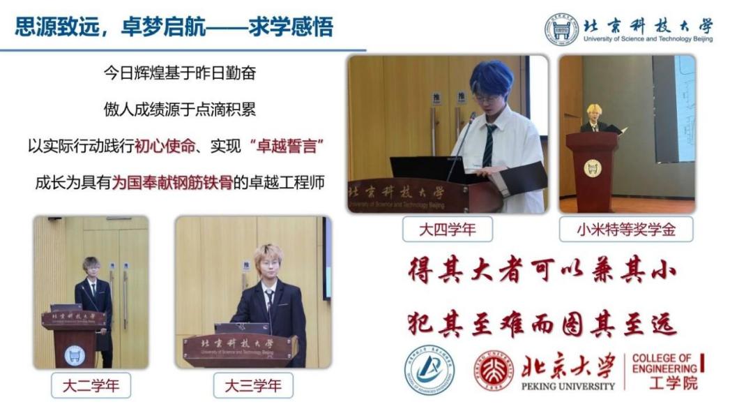 我在刚入学时盼望成为一名卓越工程师,现在,我终于可以充满底气地站在这里、同在座的各位说:我始终为成为一名卓越的女性工程师而努力,我愿将人生理想融入国家和民族的事业中,在实现中国梦的生动实践中放飞青春梦想,在为人民利益的不懈奋斗中书写人生华章。