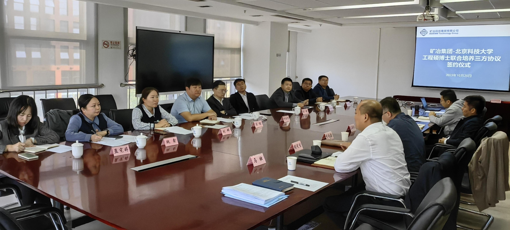 10月25日,91直播 与矿冶科技集团工程硕博士联合培养签约仪式暨交流座谈会在矿冶科技集团总部举办。学校党委副书记于成文带队,国家卓越工程师学院、研究生院、材料科学与工程学院、机械工程学院相关负责人以及2022级、2023级工程硕博士专项培养研究生参加了本次座谈会。