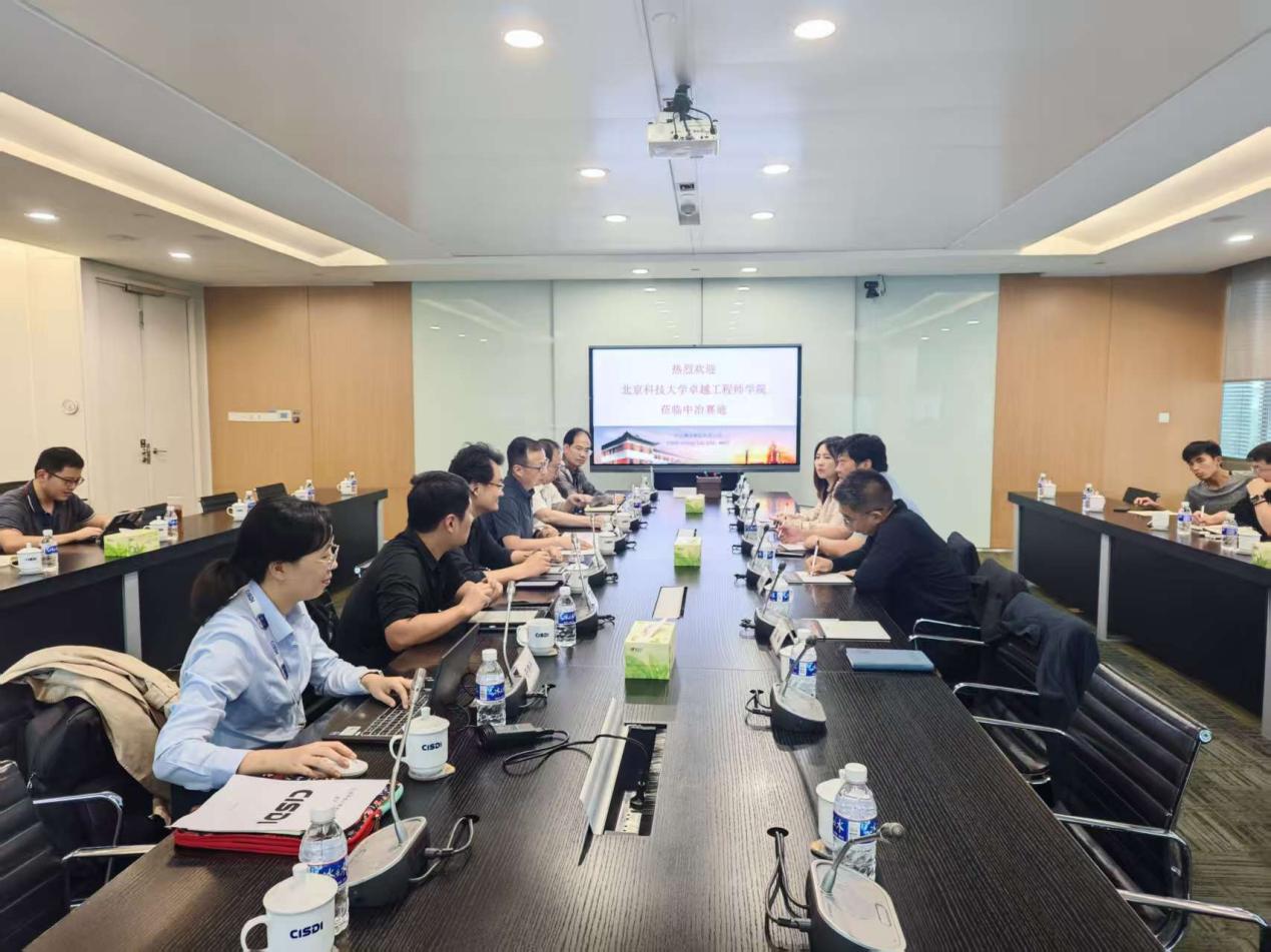 在与中冶赛迪集团有限公司的交流中,双方侧重讨论了校企课程共建与招生选拔机制的优化。集团党委组织部部长苗俊跃回顾了与北科大的长期合作,并建议在电气自动化、智能制造等领域深化课程共建,在招生环节增加企业面试权重,以精准匹配校企人才培养需求。马聪表示,学院以服务钢铁行业智能化、绿色化为使命,可通过前置企业实践项目、推动本科毕设与课题衔接等方式,强化学生工程素养。