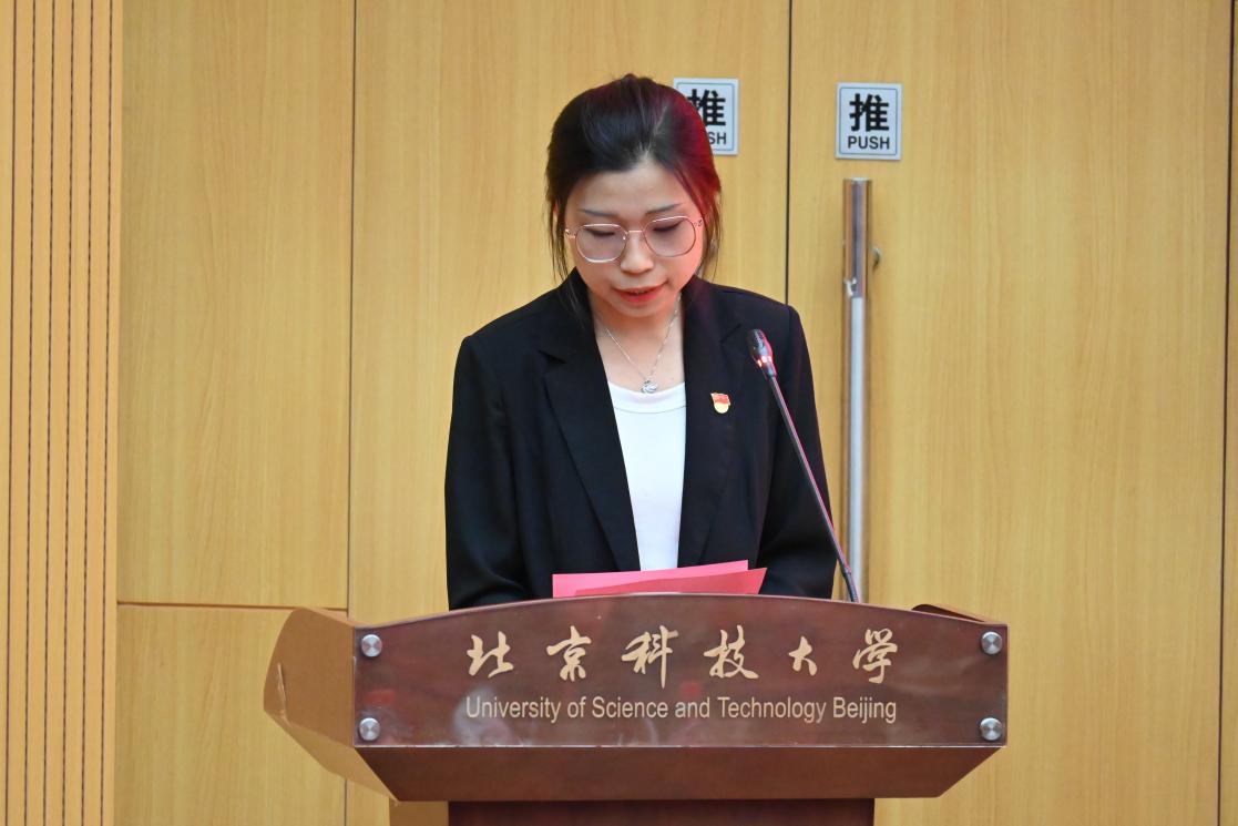 “党员领航员”代表、高工2104班丁宇樱在发言中向大家分享了自己的学习心得和建议,倡导同学们端正入党动机,加强理论学习,注重实践检验,充分发挥利用自己的能力优势和校园平台,提升个人综合素质,不断完善自我,坚定理想信念,以实际行动将热情挥洒在国家的建设和发展中。