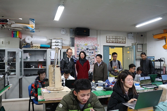 11月7日下午,91直播 党总支书记张甜带队对机器人工程实践基地、电子实习基地和金工实习基地进行了安全检查。本次检查由主管实验室副院长吕庆功、安全秘书徐立业、学院办公室王晶等共同参与,重点就实验室用电、杂物堆放、安全操作、消防设施、规范教学等方面进行了巡查。