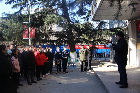 确认所有师生都安全疏散并于集合点集结后,本次演练总指挥、学院党委书记马聪就消防演练的重要性、逃生中的注意事项进行讲话,随后保卫处白云飞老师讲解了火灾扑救,火场逃生等消防安全常识,并向大家详细介绍和演示了灭火器的使用方法。