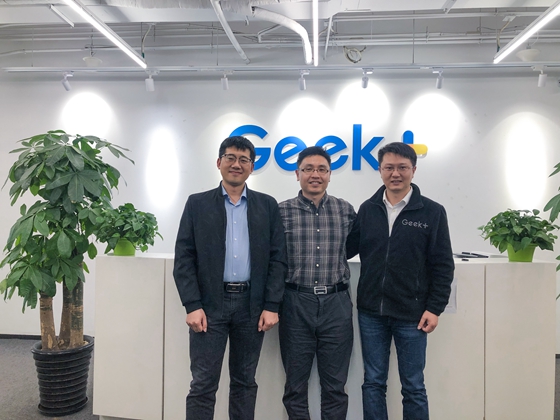 北京极智嘉科技有限公司 (Geek+)成立于2015年,其联合创始人陈曦、刘凯是我校MEI机器人队第六届、第七届队员,曾多次受邀返校进行创新创业宣讲,并持续在MEI机器人队进行技术分享和交流。公司以智能物流为业务切入点,专注打造智能产品,在机器人、嵌入式软硬件、软件工程、人工智能算法等方面拥有丰富经验和丰硕成果,产品全部自主研发并持有核心专利。据全球市场调研机构Interact Analysis报告显示,极智嘉公司产品在全球AMR市场占有率达10%以上份额位居世界第一,开发的智能机器人拣选系统已在耐克、迪卡侬、沃尔玛天猫超市、唯品会等全球行业龙头国内多家主流电商的仓库实现商用。在2020年疫情防控期间,极智嘉推出了智能紫外线消毒机器人,通过在搬运机器人的底盘上搭载UV消毒照灯将其改造成消毒机器人,并为母校鸿博园食堂提供了一台设备。