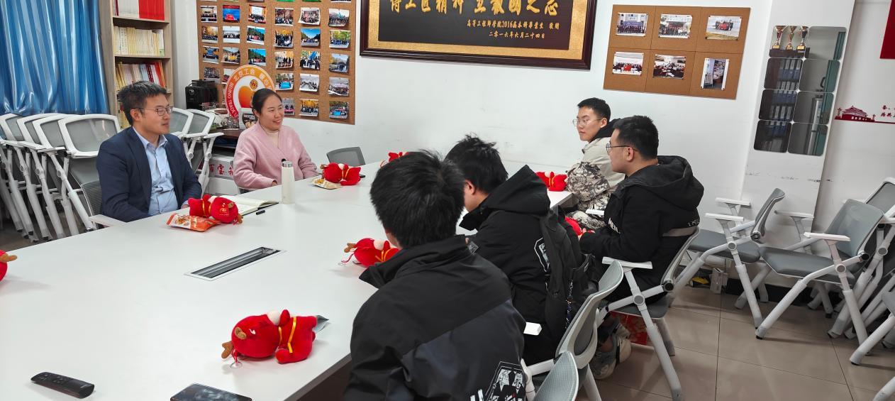张海君院长在交流中详细了解了学生们留校的学习生活情况,对学科与科创备赛、实践、实习等进行建议指导,切实询问学生现实需要并给予帮助落实,鼓励大家在新的一年里继续追求学业进步和个人成长。同时,张院长与近期在岗位一线进行科创竞赛备赛指导的教师进行深入交流,并代表学院表达关怀问候。