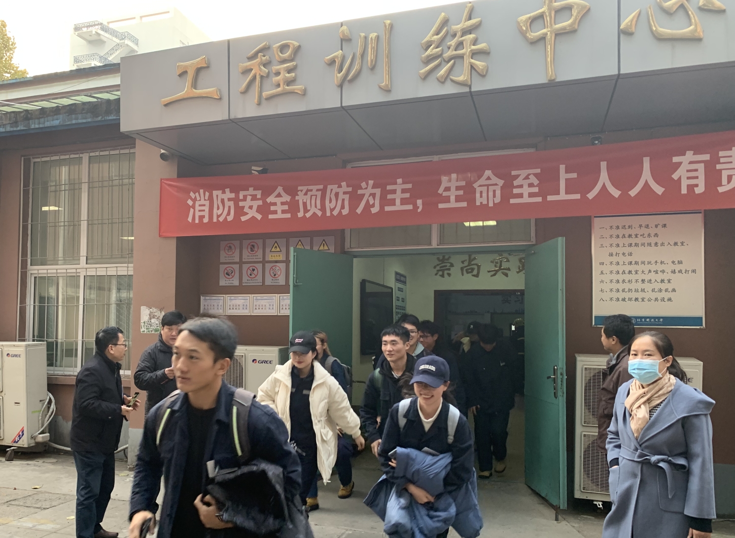 16:20,本次演习的总指挥、91直播 党委书记马聪宣布演习开始,保卫处指导人员随即在工程训练中心东区出口处放出模拟烟雾,同时响起火灾警报,演习正式开始。全体师生在应急疏散小组的引导下有序撤离,应急疏散小组清点师生人数后向总指挥汇报了人员疏散情况。